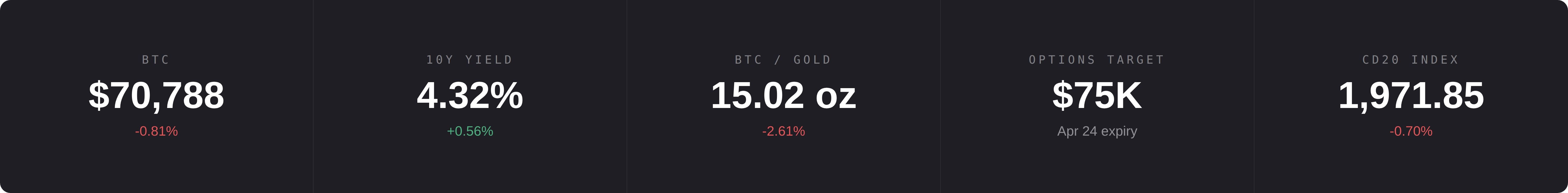 Bitcoin is down under 1% in 24 hours but still clinging to that pivotal $70,000 line. Ether, XRP, and Solana aren’t crashing either-because apparently they’re all wearing lucky kryptonite tonight. Whether BTC can stay above $70k will be the deciding factor between a “meh” day and a stadium-sized shrug.