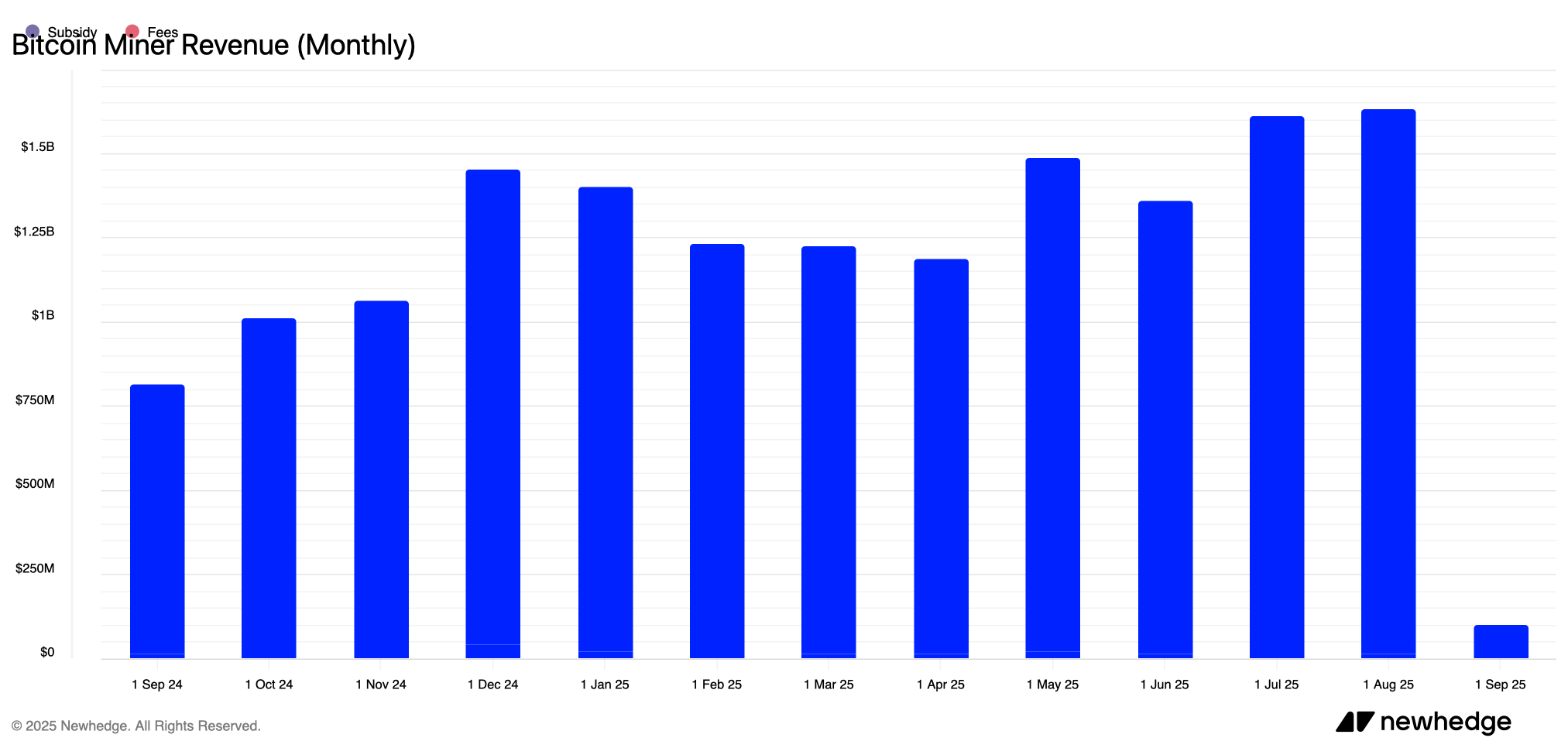 Miners in August? They’re basically the Elon Musk of the blockchain-unstoppable. Data from theblock.co says they made $1.65B from subsidies and $1.66B with fees. newhedge.io claims $1.633B total, which is just enough to buy a lot of pizza. 🍕