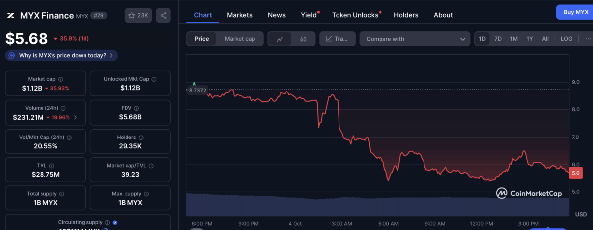 I watched MYX Finance (MYX) perform its 24-hour soap opera the way you watch a distant relative at Thanksgiving-with a mix of curiosity, horror, and the dread that you’ll end up in the family photo anyway. The token slunk 35% lower, sliding from a stubborn $17.06 to a support range between $9.4 and $8.83, depending on which conspiracy theory you trust, per TradingView. Nice to know the market has a mood, and it’s a mood you don’t want to borrow from.