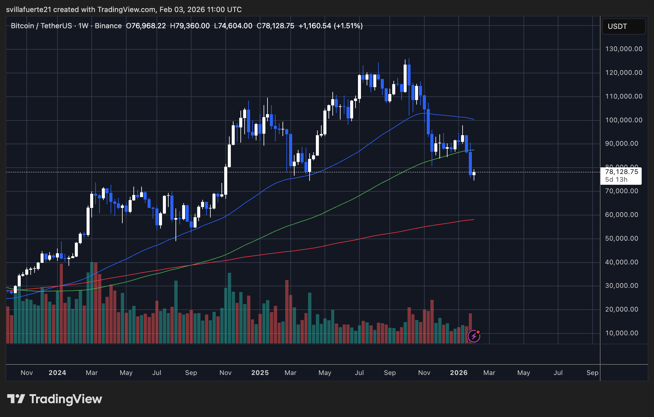 Upon gazing at Bitcoin’s weekly chart, one cannot help but feel a deep sense of empathy for this errant hero, still grappling with the weight of sustained pressure, despite a meager rebound from its recent lows. It hovers pitifully around $78,000, after a disheartening dip that danced briefly in the mid-$70,000s-a zone that once served as an important refuge. Alas, this bounce, like a flickering candle in the wind, lacks the fortitude to signal any grand trend reversal.